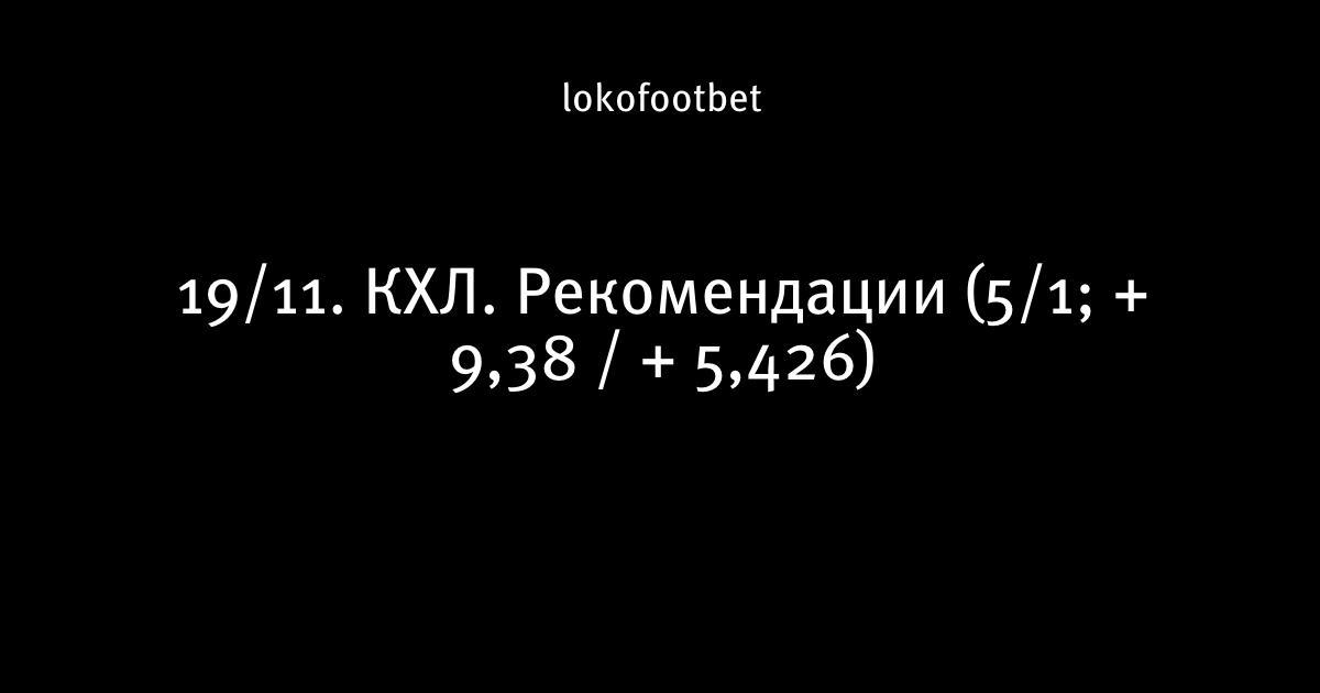 19/11. КХЛ. Рекомендации (5/1; + 9,38 / + 5,426)