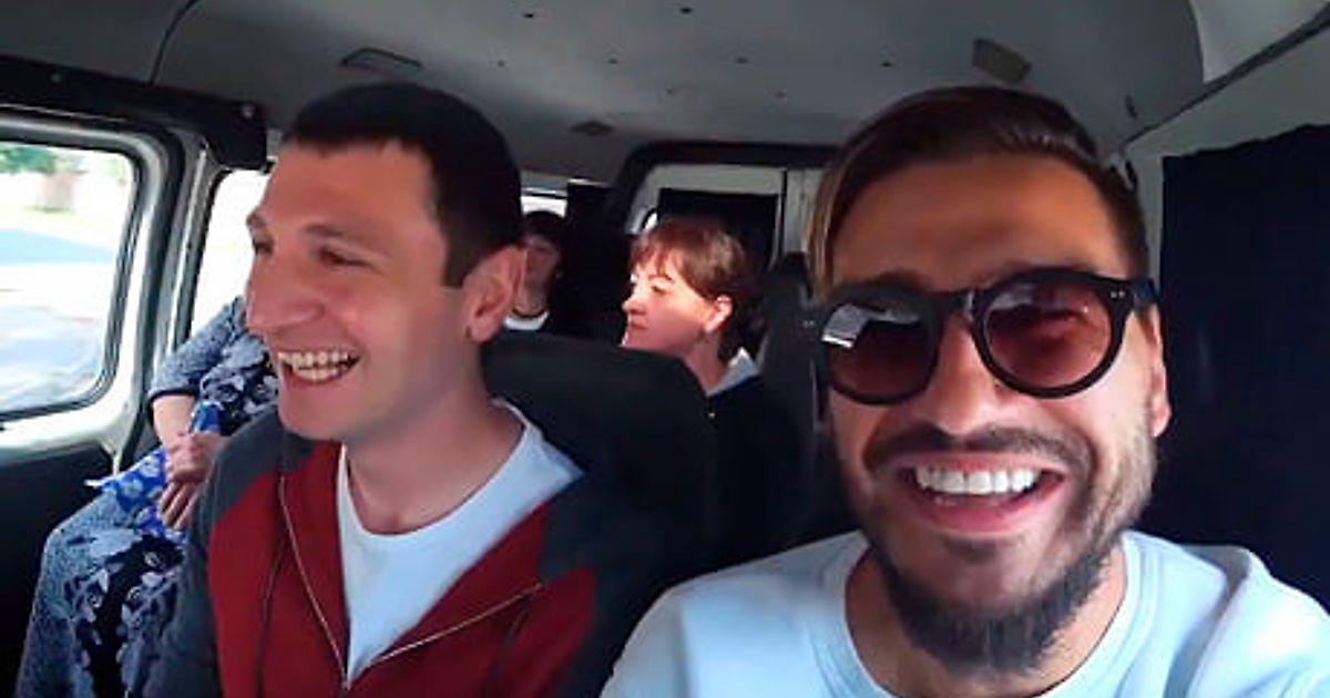 Вы все знаете то самое место за водителем, пассажир с которого передает деньги за проезд. Так и здесь – Жека и Алан сели как раз туда, и Дзагоев всю дорогу передает деньги. «Руку подкачаю», – шутит он.