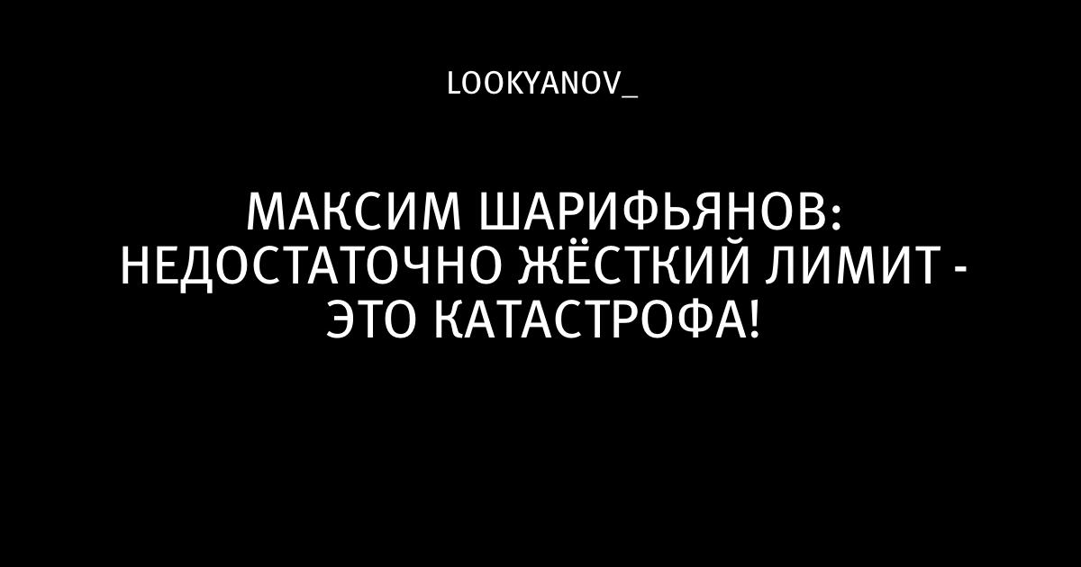 МАКСИМ ШАРИФЬЯНОВ: НЕДОСТАТОЧНО ЖЁСТКИЙ ЛИМИТ - ЭТО КАТАСТРОФА!