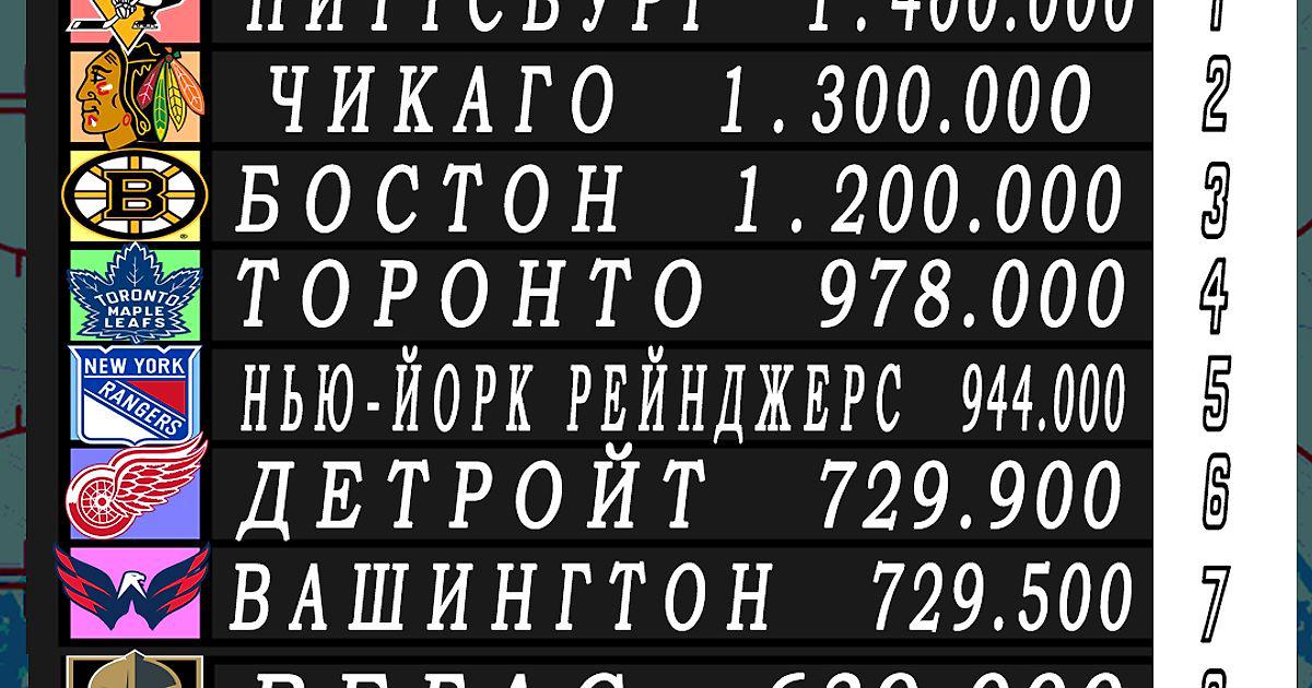 Теперь мы рады представить вам полный рейтинг клубов Национальной Хоккейной Лиги по этому показателю!
