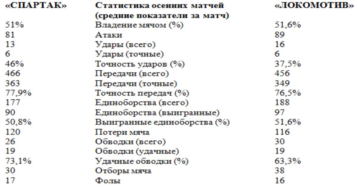 В осенних матчах у команд примерно одинаковые статистические показатели, в которых какого-то явного преимущества нет ни у одной из сторон. В чем-то успешнее «Спартак», а в чем-то – «Локомотив». Более того, в последней очной встрече обе команды также показали почти что идентичные цифры: железнодорожники чаще переходили к атакующим действиям, но ударов по воротам больше нанесли спартаковцы; в точности передач чуть успешнее были гости, а в единоборствах – хозяева.