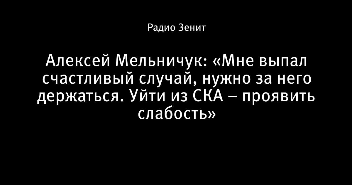 Алексей Мельничук: «Мне выпал счастливый случай, нужно за него держаться. Уйти из СКА – проявить слабость»