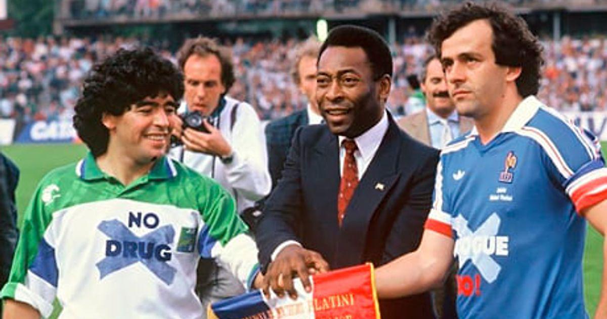 На днях в пабликах с футбольным олдскулом всплыла фотография, но которой Пеле, Платини и Марадона позируют в центре поля перед каким-то матчем – вы наверняка видели этот кадр.