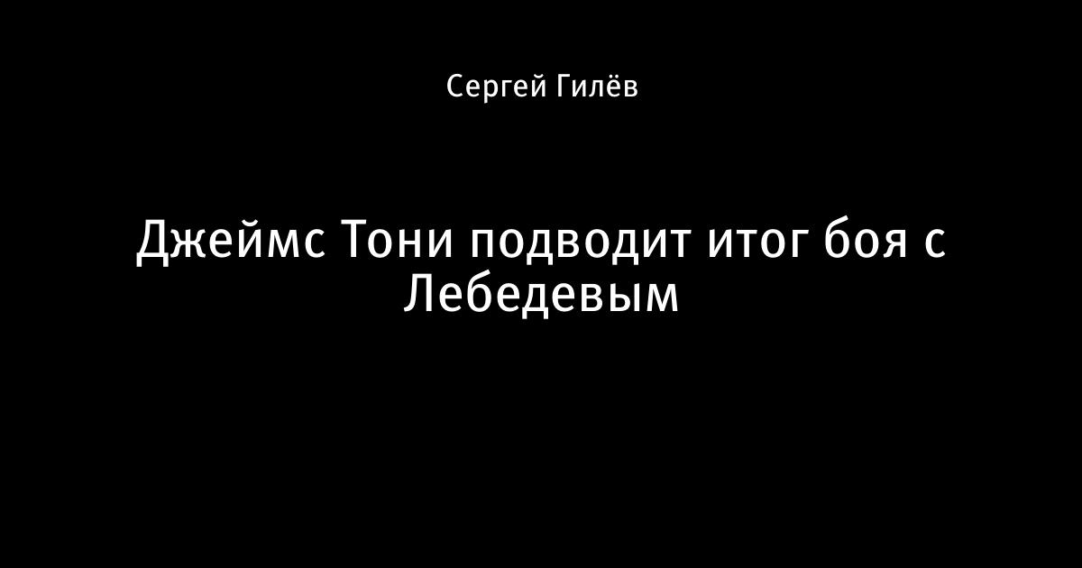 21 ноября 2011, 02:26 Джеймс Тони подводит итог боя с Лебедевым Автор Сергей Гилёв Этот пост опубликован в блоге на Трибуне Sports.ru. Присоединяйтесь к крупнейшему сообществу спортивных болельщиков! Другие посты блога Дэвид Клинч Джеймс Тони