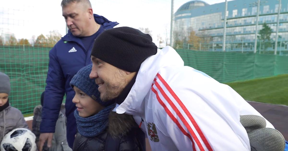 После тренировки сборной России в Новогорске, как обычно, дольше всех раздавал автографы Артем Дзюба. Капитан национальной команды задержался, чтобы пофотографироваться с детьми, и придумал самый милый момент недели. Вот, смотрите: