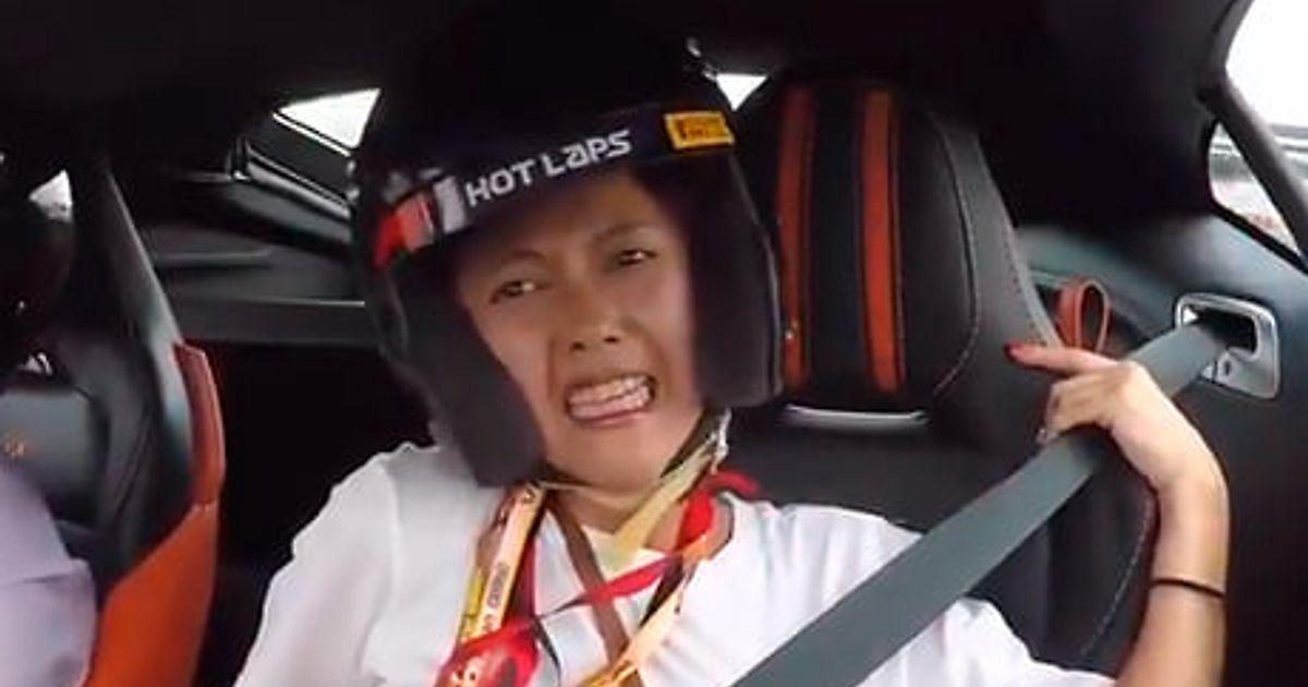 Бывший гонщик «Формулы-1» мощно прокатил фанатку на суперкаре по треку для Гран-при. Она визжала не переставая