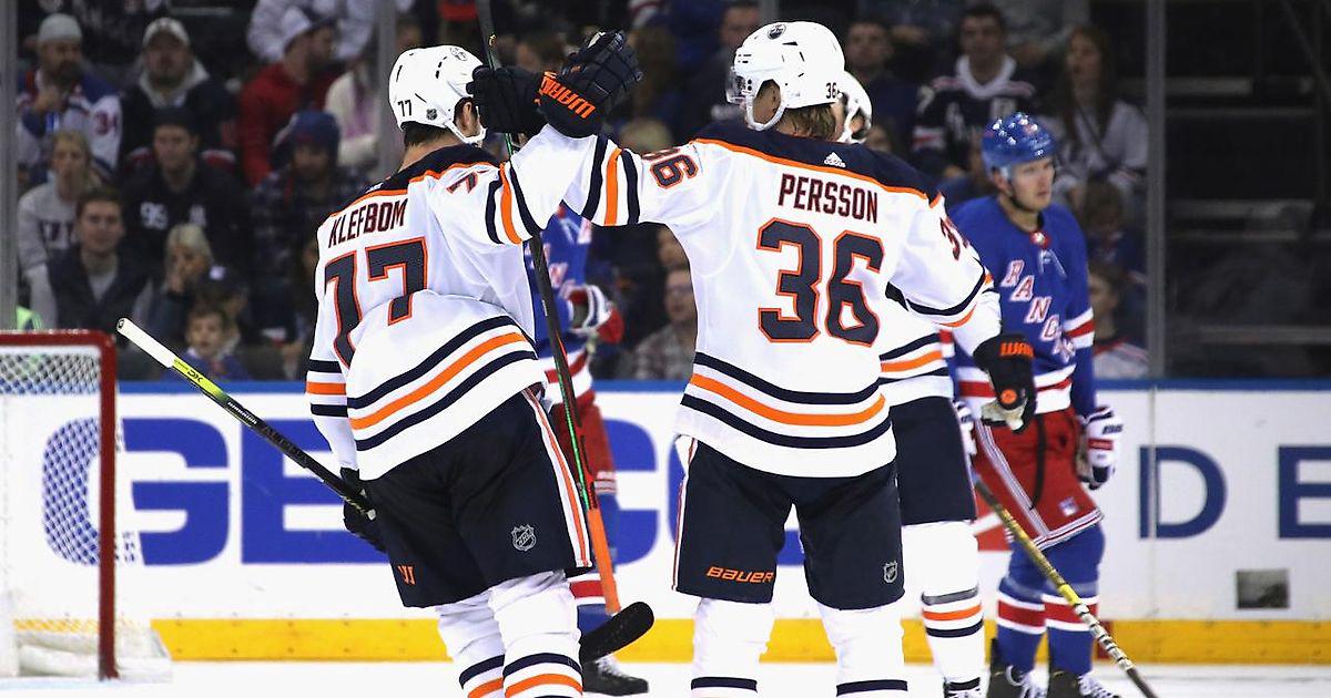 "Нью-Йорк Рейнджерс"-"Эдмонтон Ойлерс" 1:4.Леон Драйзайтль набрал 3 очка (2+1),Коннор МакДэвид и Оскар Клефбом набрали по 2 очка (1+1),Майк Смит отразил 20 бросков."Нефтяники" выиграли 5 стартовых матчей.