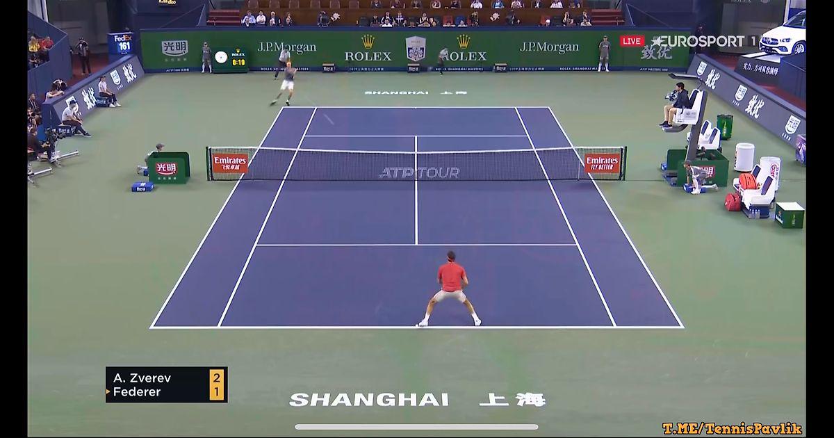 В ходе розыгрыша Зверев сыграл Роджеру под лево. Тот, под маской резанного, сыграл укороченный.