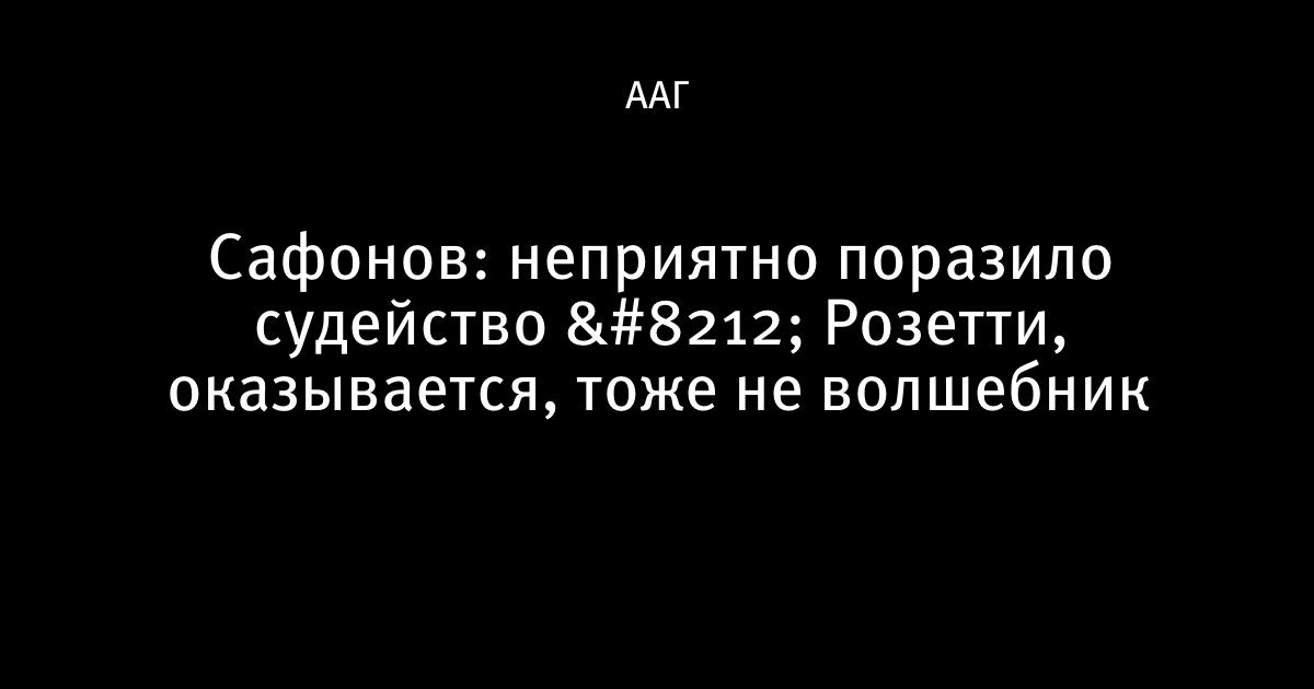 Сафонов: неприятно поразило судейство — Розетти, оказывается, тоже не волшебник