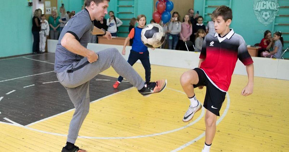 В мероприятии приняли участие футболисты ЦСКА Кирилл Набабкин и Алан Дзагоев. В начале встречи школьники задали игрокам армейского клуба ряд вопросов, а затем они вместе поиграли в футбол. Алан и Кирилл выступали за разные команды. Несколько товарищеских матчей не выявили победителя: каждый одержал по одной победе, и еще трижды была зафиксирована ничья. Затем состоялся челлендж, главной задачей которого было попасть со своей половины поля в ворота соперника мячом так, чтобы он залетел верхом и коснулся сетки. Сильнее оказался Набабкин — 2:1.