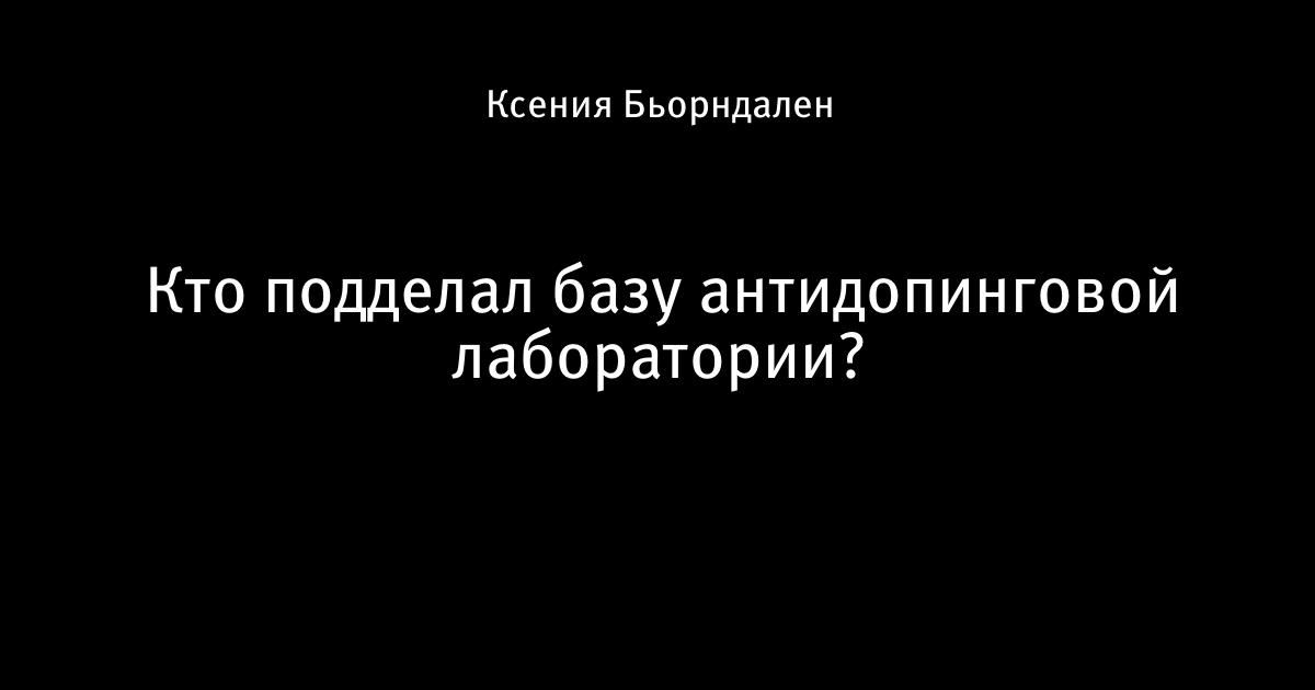 17 октября 2019, 21:36 Кто подделал базу антидопинговой лаборатории? Этот пост написан пользователем Sports.ru, начать писать может каждый болельщик (сделать это можно здесь). Автор Ксения Бьорндален Этот пост опубликован в блоге на Трибуне Sports.ru. Присоединяйтесь к крупнейшему сообществу спортивных болельщиков! Другие посты блога Доча-солнышко Павел Колобков Министерство спорта России Токио-2020 допинг московская антидопинговая лаборатория WADA