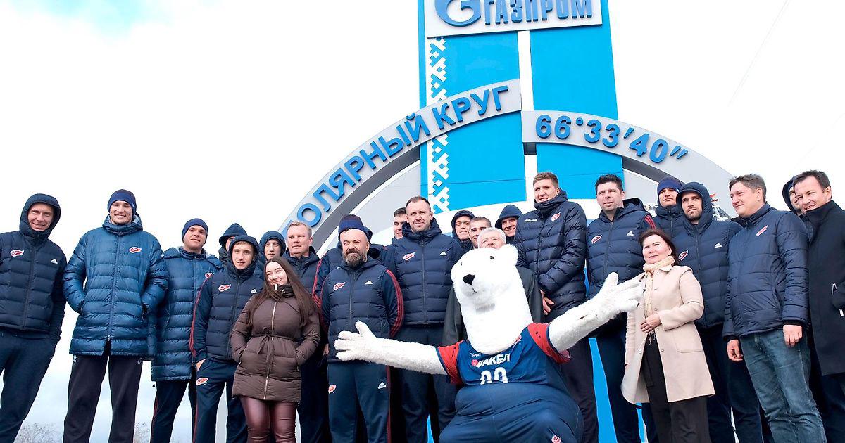 Утром 27 сентября наша команда приземлилась в столице Ямала. Встречающие подарили всем стильные шапки с надписью Yamal и сходу отвезли на стелу «66 параллель». Здесь «ФАКЕЛ» совершил красочный обряд пересечения Северного полярного круга. Уже в гостинице тренерский штаб провёл совещание и решил отменить экскурсии, чтобы дать игрокам отдохнуть. И на 27-е число наметили только одну вечернюю тренировку.