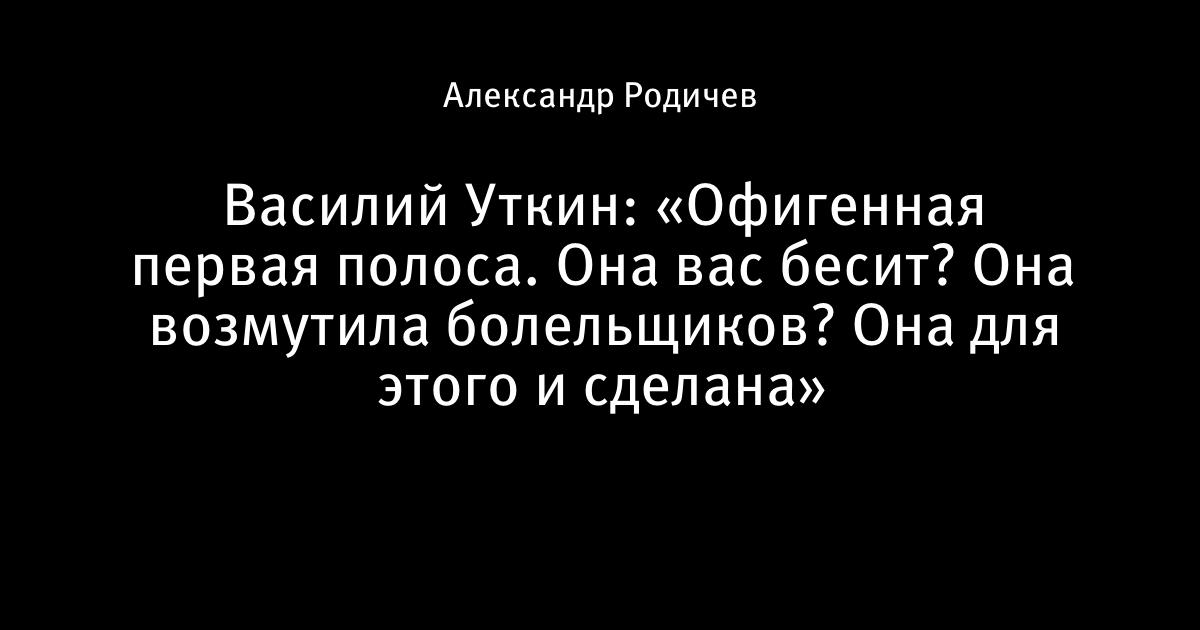 Василий Уткин: «Офигенная первая полоса. Она вас бесит? Она возмутила болельщиков? Она для этого и сделана»