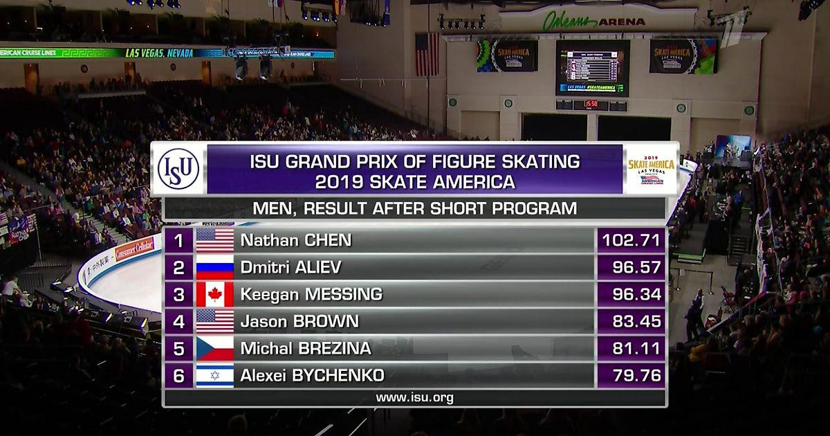 На первой строчке блистает Натан Чен с результатом 102,71 балла. Однако Чен тоже был не безупречен в этот раз.