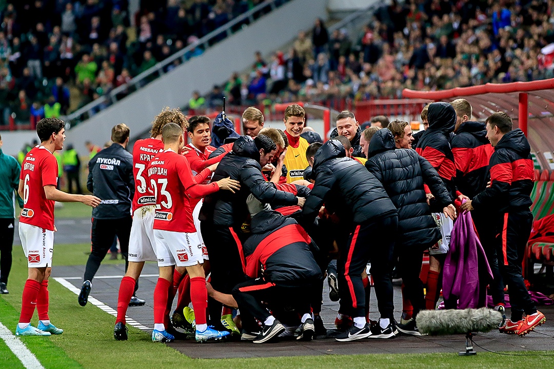 Тедеско, впервые для себя в «Спартаке» и вообще у команды за долгое время сыграв в три центральных защитника, после первого гола даже не вскинул рук и не подпрыгнул. Тренер показал кому-то из игроков на оба виска: мол, думайте теперь, не теряйте голову от радости. А ликовал Доменико уже после, при втором мяче Ларссона.