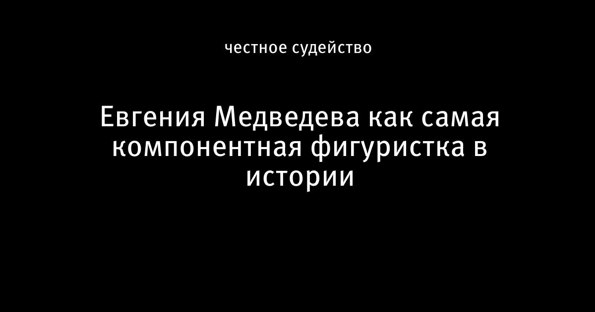 Смотрим и осознаём, что вопреки клевете предвзятого блогера Морфеуса, замахнувшегося своим тщедушием «мир спасти», у Медведевой не только никогда не имелось по карьере грибов, а произошла вопиющая кража ее кровных компонентов, заработанных трудом и талантом. Как-то увидал в Ютубе ролик с характерным названием «Украденные компоненты Медведевой», это об играх томаса баха. С чего и пошла вопиющая ложь, а катание из женского проникновенного, честно оцениваемого, превратилось в попрыгушки и судейские посиделки.