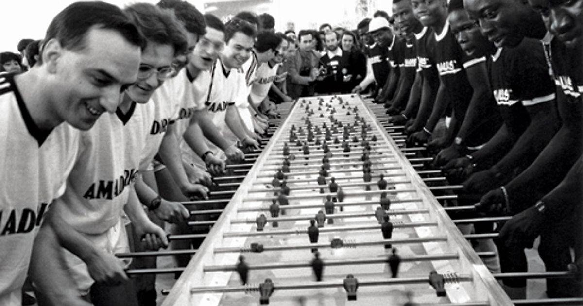 Так говорит Маурицио Катттелан, итальянский художник с футбольными взглядами. В 1991-м году он собрал для выставки в Болонье инсталляцию “Стадион” — 7-метровый настольный футбол, рассчитанный на матч двух команд по 11 человек. В роли гостей был игровой состав “Чезены”, на тот момент аутсайдера серии А. Хозяева — собранные самим Каттеланом африканские мигранты (в основном из Сенегала), одетые в специально сшитую форму и названные “Forniture Sud” (“Подвоз с юга”).