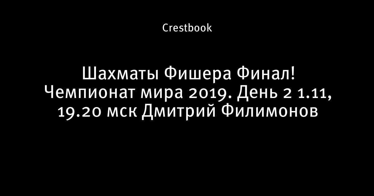 Шахматы Фишера 🏆 Финал! Чемпионат мира 2019. День 2 ⏰ 1.11, 19.20 мск 🎤 Дмитрий Филимонов