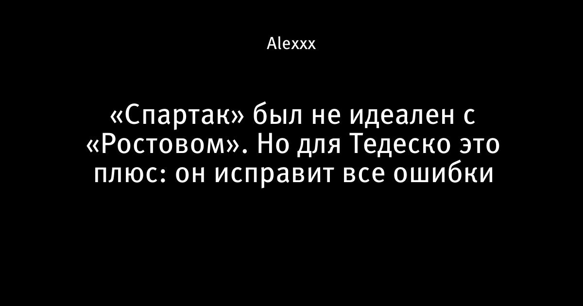 Матч против «Ростова» вполне мог сложиться для «Спартака» идеально, а Александр Максименко имел все шансы оформить «сухарь» в своем пятидесятом матче за клуб. Но для Тедеско гораздо важнее получить информацию о проблемных местах команды и ее болевых точках сегодня, чтобы не допустить ошибок завтра. «Спартак» тяжело отреагировал на переход «Ростова» к другой тактике, немного подсел физически и все-таки пожег определенное количество нервных клеток у своего тренера и болельщиков. Но сегодня есть уверенность, что все ошибки будут оперативно разобраны, а риск их повторения сведен к минимуму в будущем.