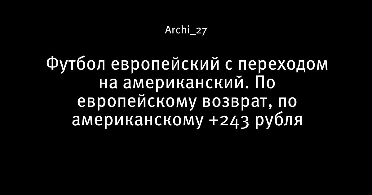 Футбол европейский с переходом на американский. По европейскому возврат, по американскому +243 рубля