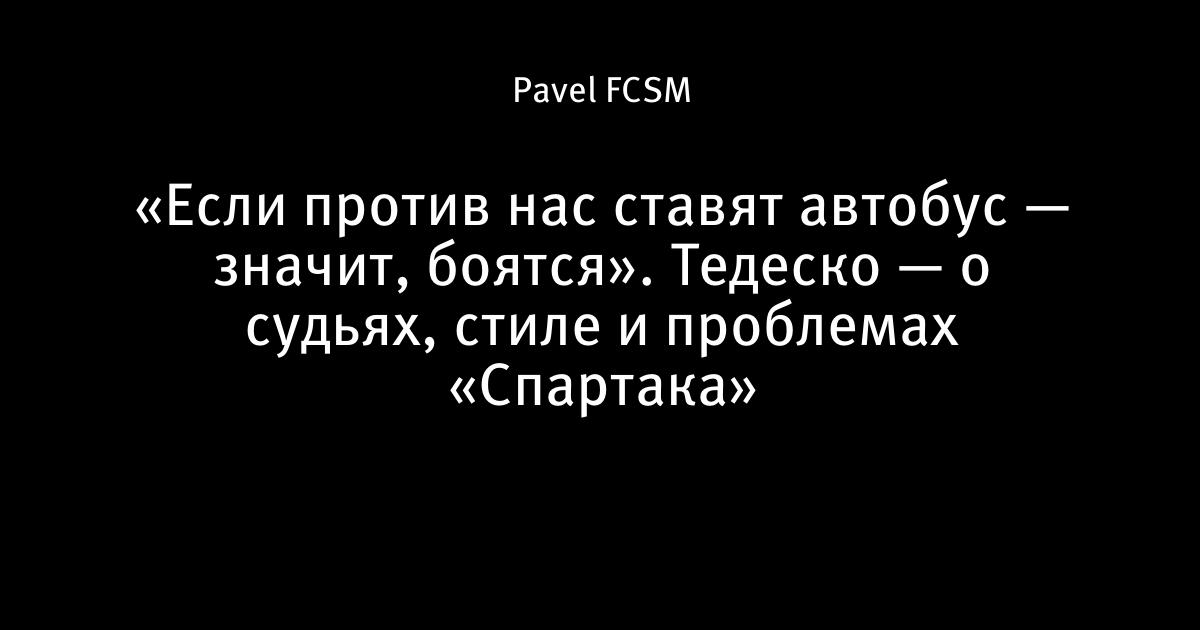 «Если против нас ставят автобус — значит, боятся». Тедеско — о судьях, стиле и проблемах «Спартака»