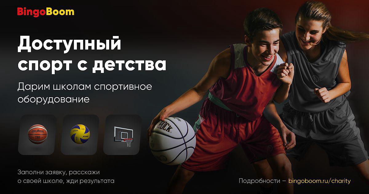 Букмекерская компания BingoBoom запускает федеральную благотворительную программу по обеспечению общеобразовательных школ спортивным инвентарем. Партнерами проекта стали Российская Федерация Баскетбола и Всероссийская Федерация Волейбола, а генеральным информационным спонсором телеканал Eurosport.