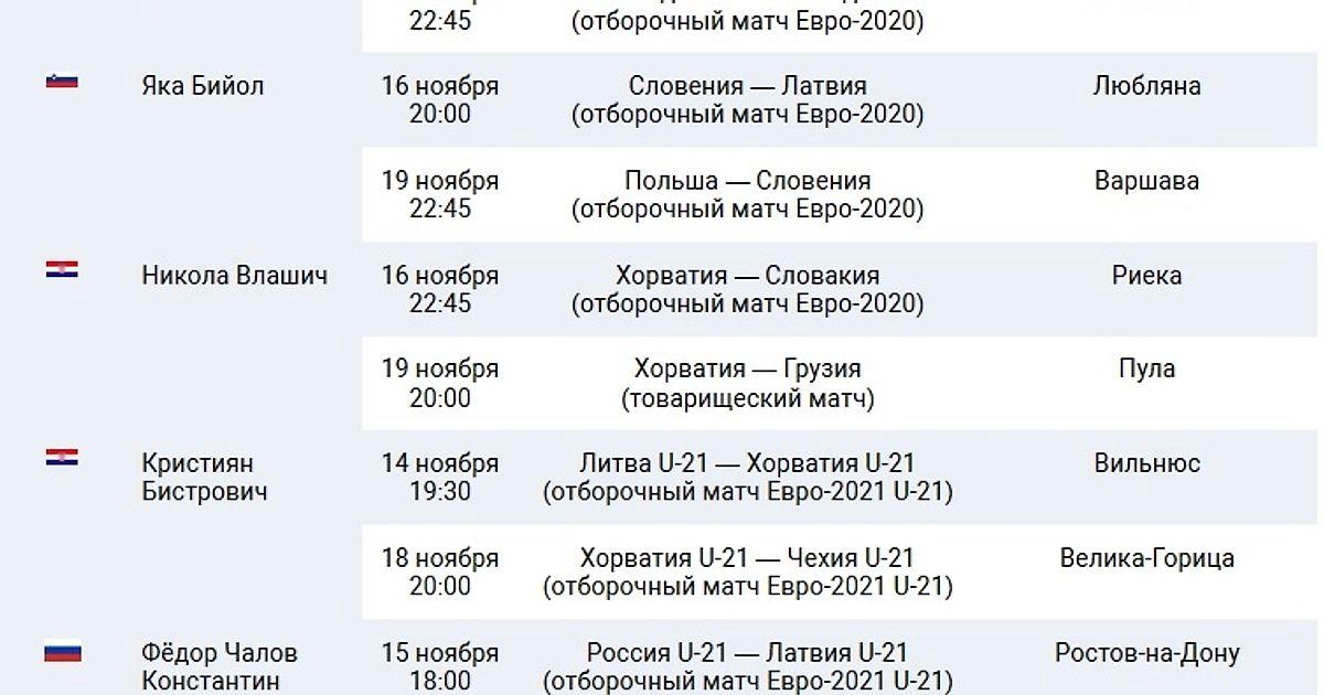 Список армейцев, вызванных в сборные на ноябрьские матчи
