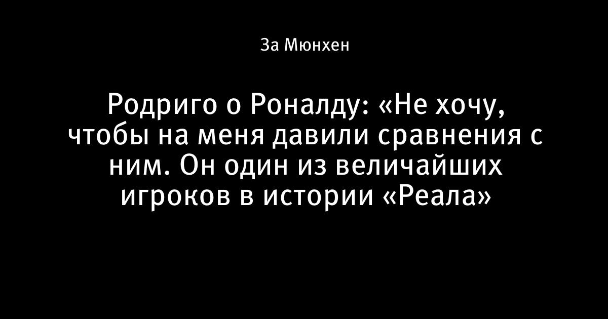 Он один из величайших игроков в истории клуба, если не самый великий. Я не хочу, чтобы на меня давили сравнения с ним», – сказал Родриго.