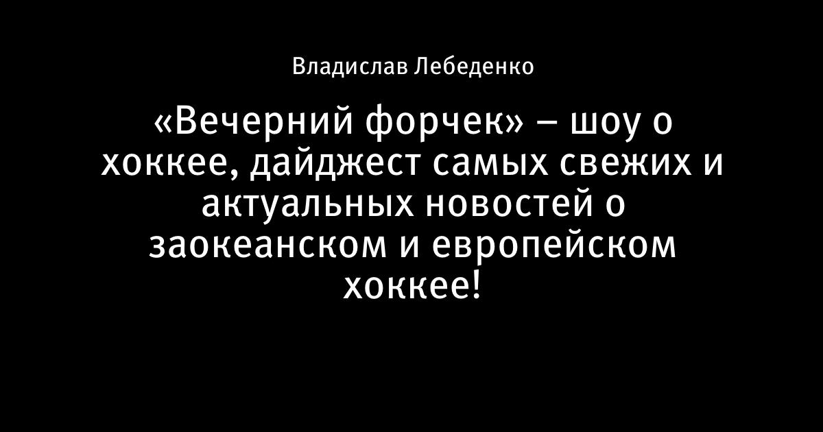 «Вечерний форчек» – шоу о хоккее, дайджест самых свежих и актуальных новостей о заокеанском и европейском хоккее!