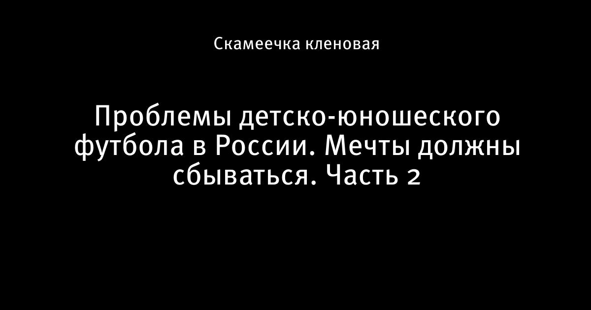 Проблемы детско-юношеского футбола в России. Мечты должны сбываться. Часть 2