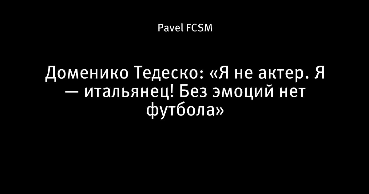 Доменико Тедеско: «Я не актер. Я — итальянец! Без эмоций нет футбола»