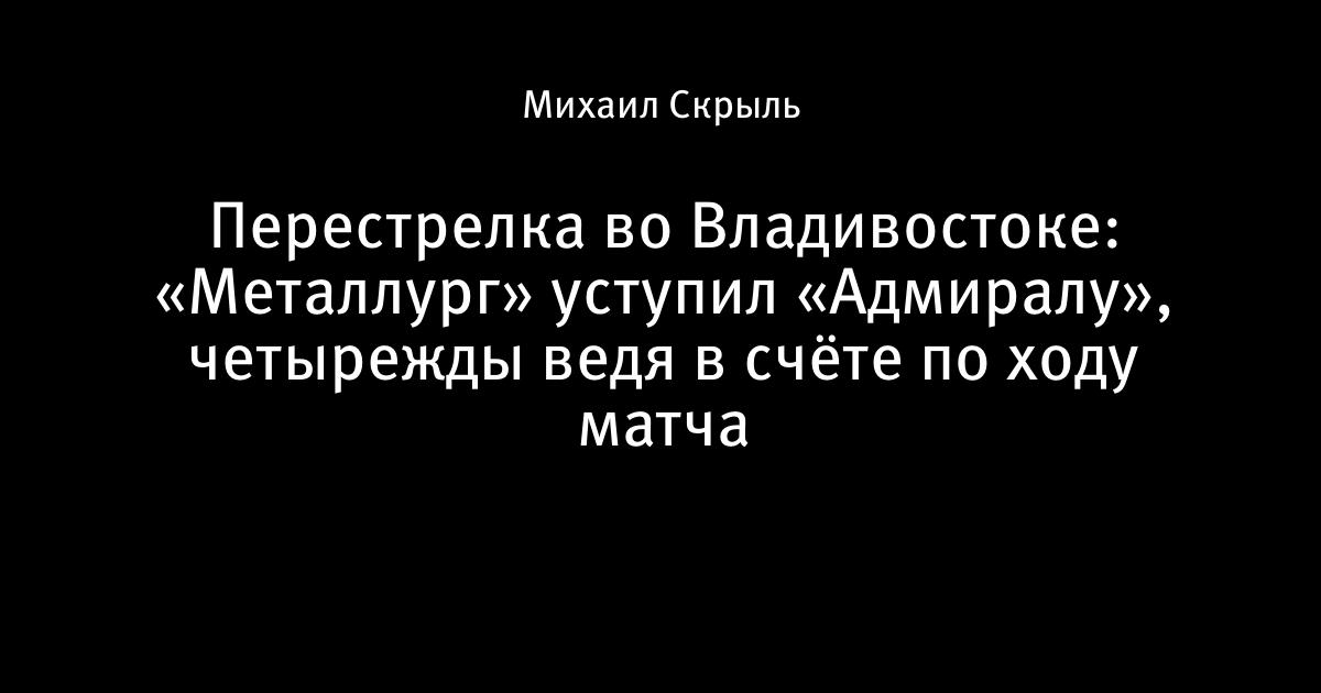 Перестрелка во Владивостоке: «Металлург» уступил «Адмиралу», четырежды ведя в счёте по ходу матча