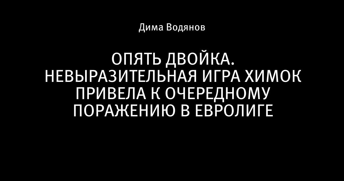 ОПЯТЬ ДВОЙКА. НЕВЫРАЗИТЕЛЬНАЯ ИГРА ХИМОК ПРИВЕЛА К ОЧЕРЕДНОМУ ПОРАЖЕНИЮ В ЕВРОЛИГЕ