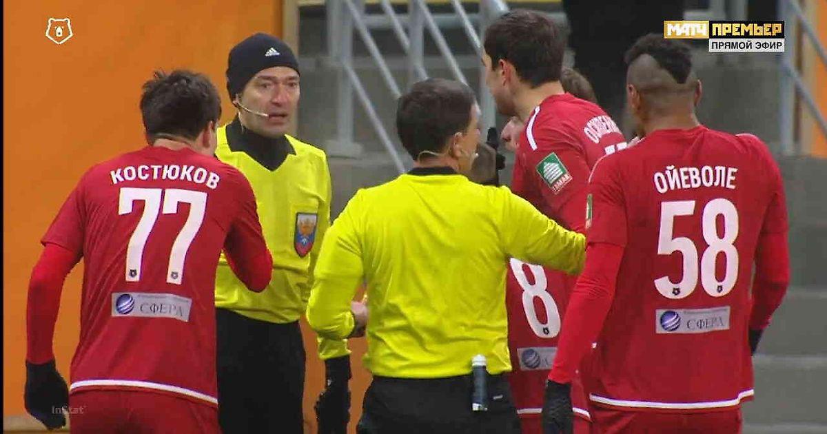 При счете 2:3 во втором тайме случился странный момент: «Тамбов» после подачи со штрафного забил, главный арбитр Павел Кукуян уже показал на центр, но игроки «Локо» были недовольны и начали возмущаться.