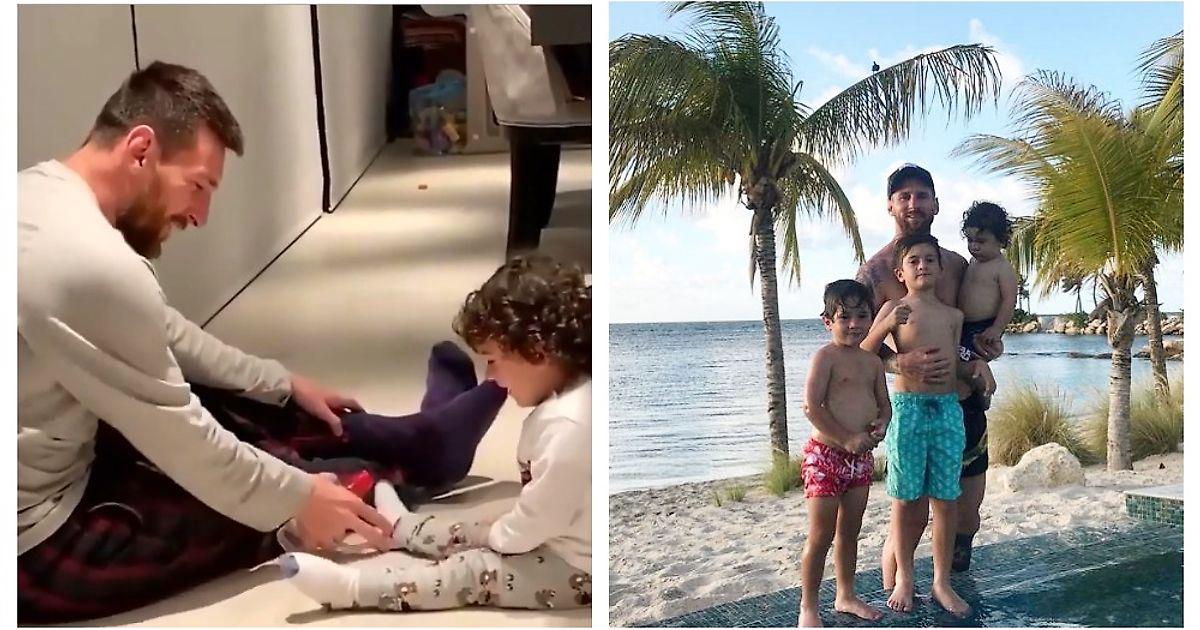 Жена нападающего Барселоны Лионеля Месси Антонелла Рокуццо в сториз своего Instagram выложила новое видео. На нем лидер каталонцев играет со своим младшим сыном.