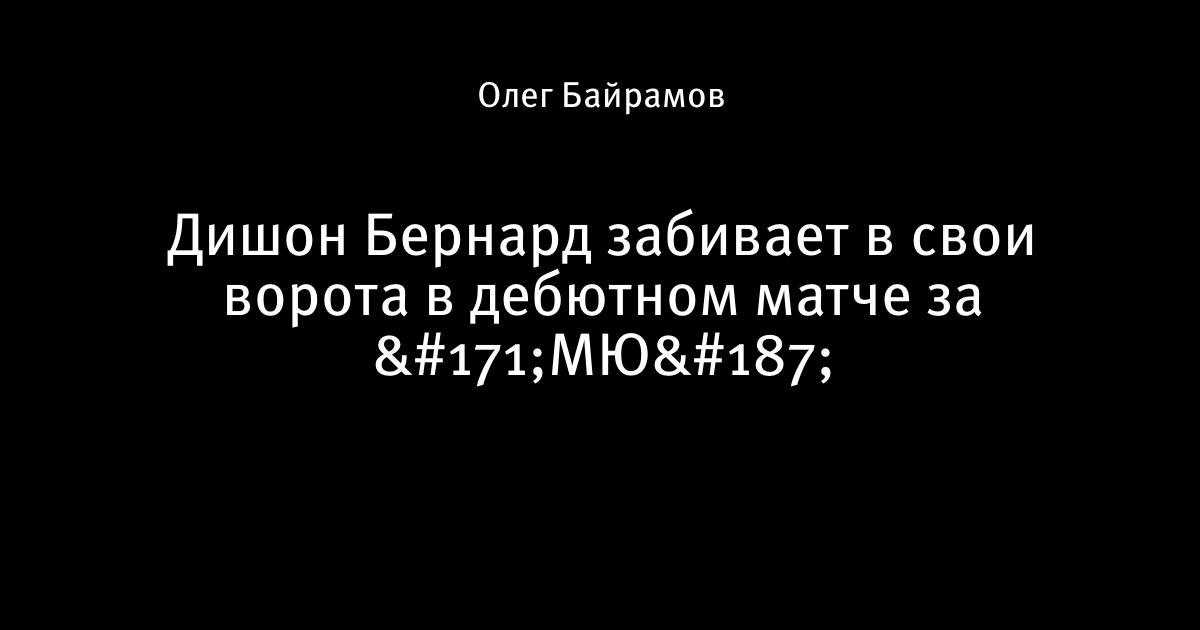 28 ноября 2019, 20:38 Дишон Бернард забивает в свои ворота в дебютном матче за «МЮ» Этот пост написан пользователем Sports.ru, начать писать может каждый болельщик (сделать это можно здесь). Автор Олег Байрамов