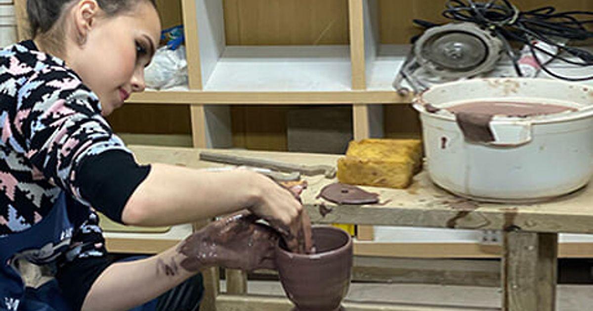 От реплики до реализации пролетело несколько дней: Алина вместе с хореографом Даниилом Глейхенгаузом посетила мастерскую и поработала за гончарным станком.