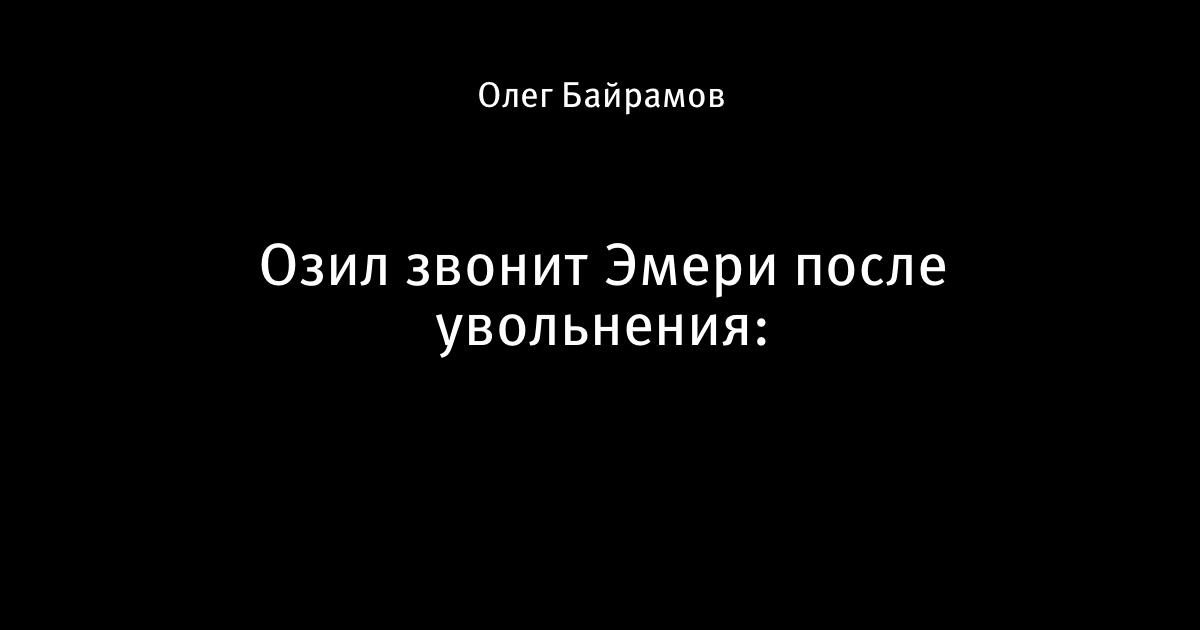 29 ноября 2019, 13:36 Озил звонит Эмери после увольнения: Этот пост написан пользователем Sports.ru, начать писать может каждый болельщик (сделать это можно здесь). Автор Олег Байрамов