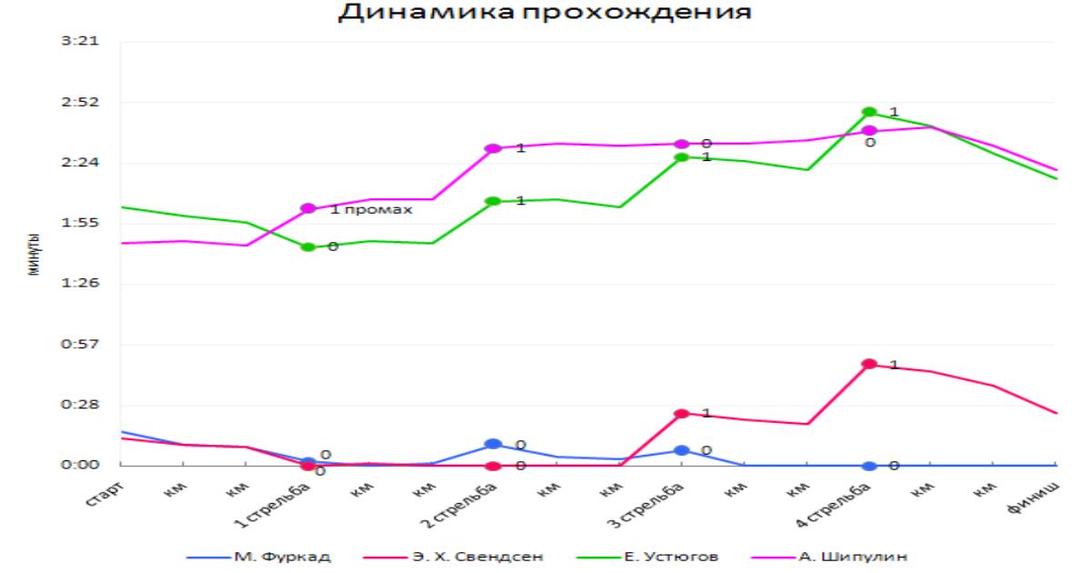 Считаю, выступили очень достойно. Никакого сравнения со спринтом я не нашел. Стреляли и бежали очень прилично. Даже каждого отдельно анализировать не буду. Потому что все трое, на мой взгляд, отлично постарались в улучшении мест и в смывании неудачных оттенков, которые возникли после спринта. У ребят это получилось. Эстерсунд их все-таки запомнит. Хотя бы за «пасьют».