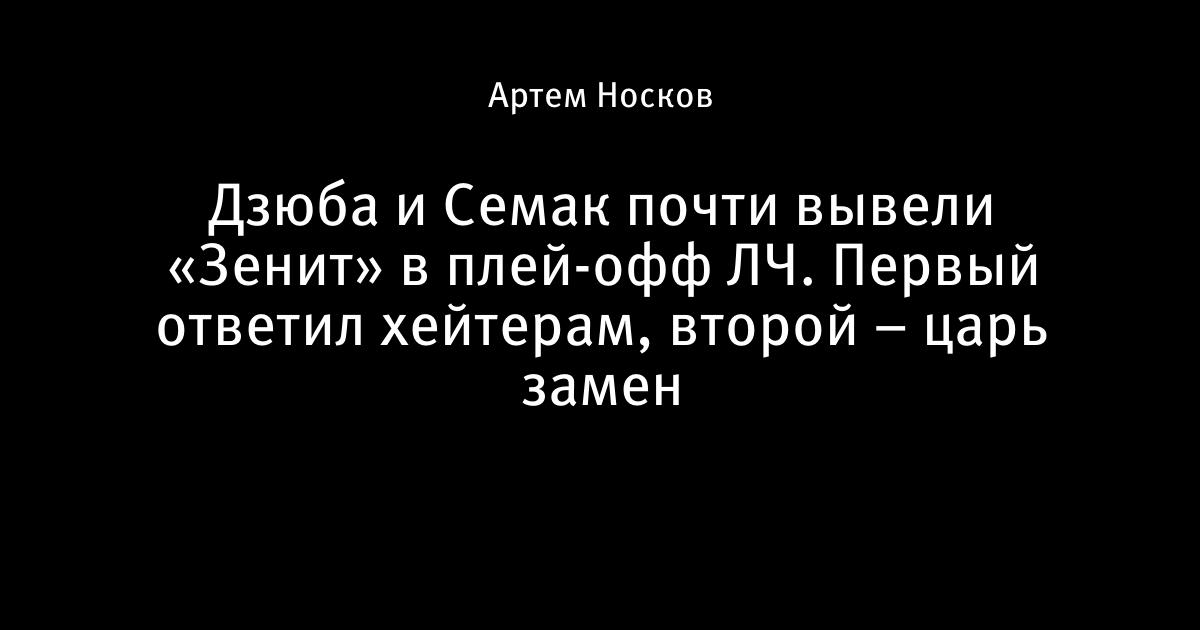 Дзюба и Семак почти вывели «Зенит» в плей-офф ЛЧ. Первый ответил хейтерам, второй – царь замен