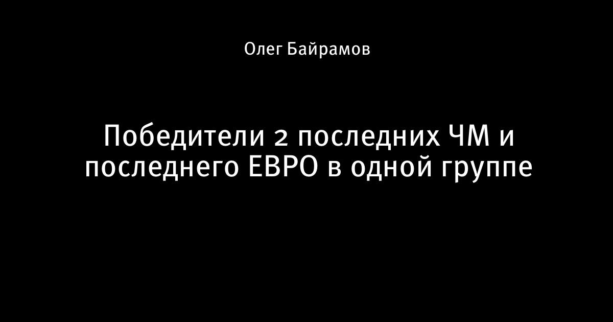 1 декабря 2019, 12:04 Победители 2 последних ЧМ и последнего ЕВРО в одной группе 😳 Этот пост написан пользователем Sports.ru, начать писать может каждый болельщик (сделать это можно здесь). Автор Олег Байрамов