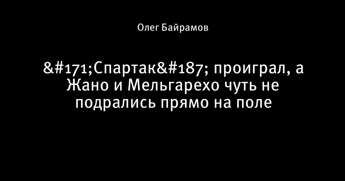 1 декабря 2019, 21:08 «Спартак» проиграл, а Жано и Мельгарехо чуть не подрались прямо на поле 😳 Этот пост написан пользователем Sports.ru, начать писать может каждый болельщик (сделать это можно здесь). Автор Олег Байрамов