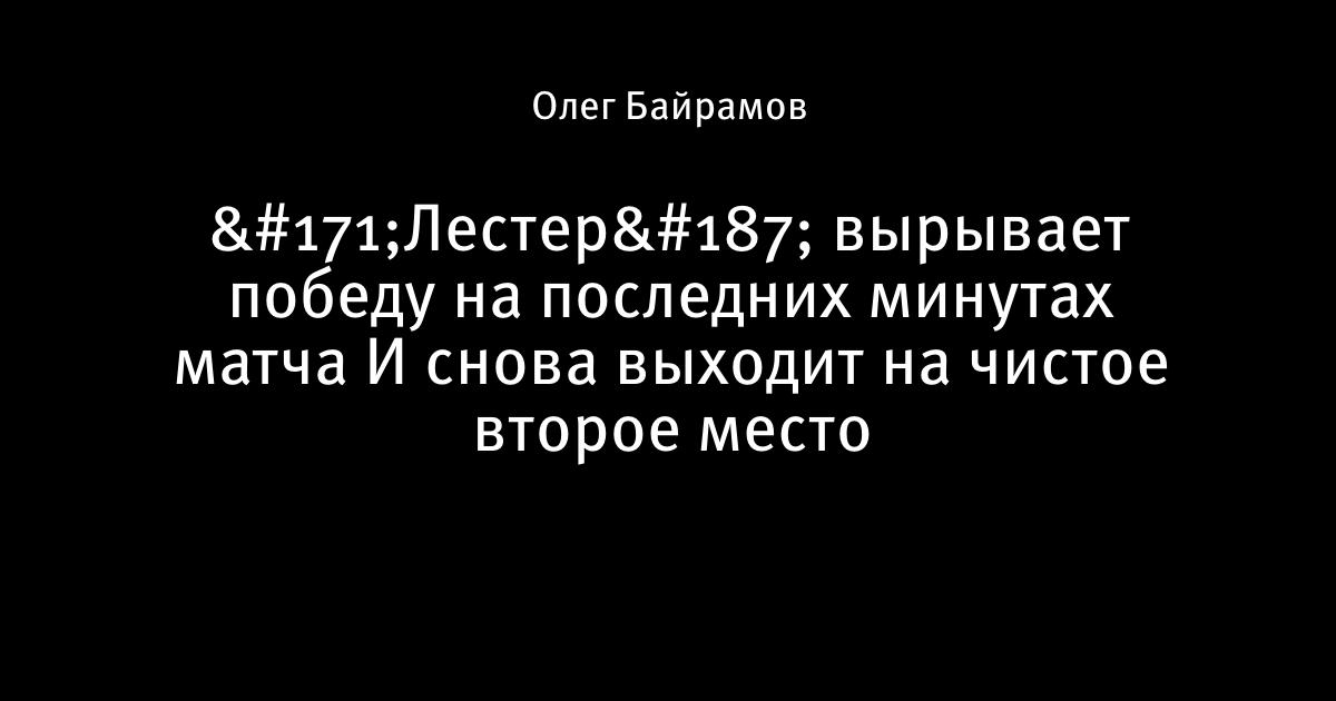 1 декабря 2019, 21:28 «Лестер» вырывает победу на последних минутах матча 💪 И снова выходит на чистое второе место Этот пост написан пользователем Sports.ru, начать писать может каждый болельщик (сделать это можно здесь). Автор Олег Байрамов