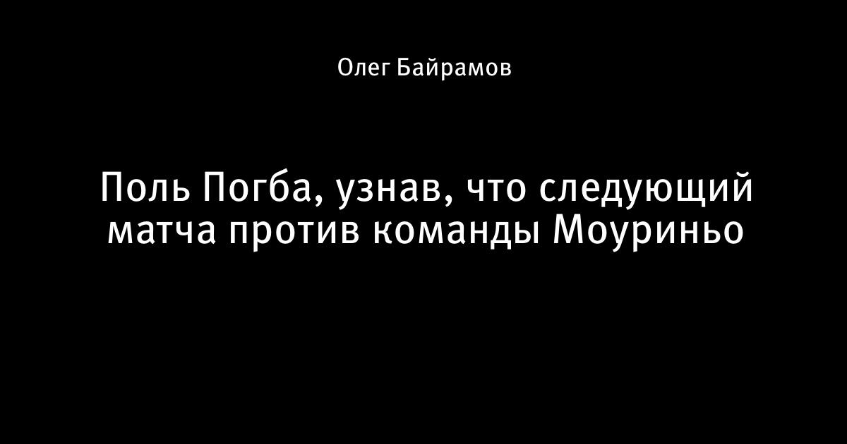 2 декабря 2019, 18:29 Поль Погба, узнав, что следующий матча против команды Моуриньо Этот пост написан пользователем Sports.ru, начать писать может каждый болельщик (сделать это можно здесь). Автор Олег Байрамов