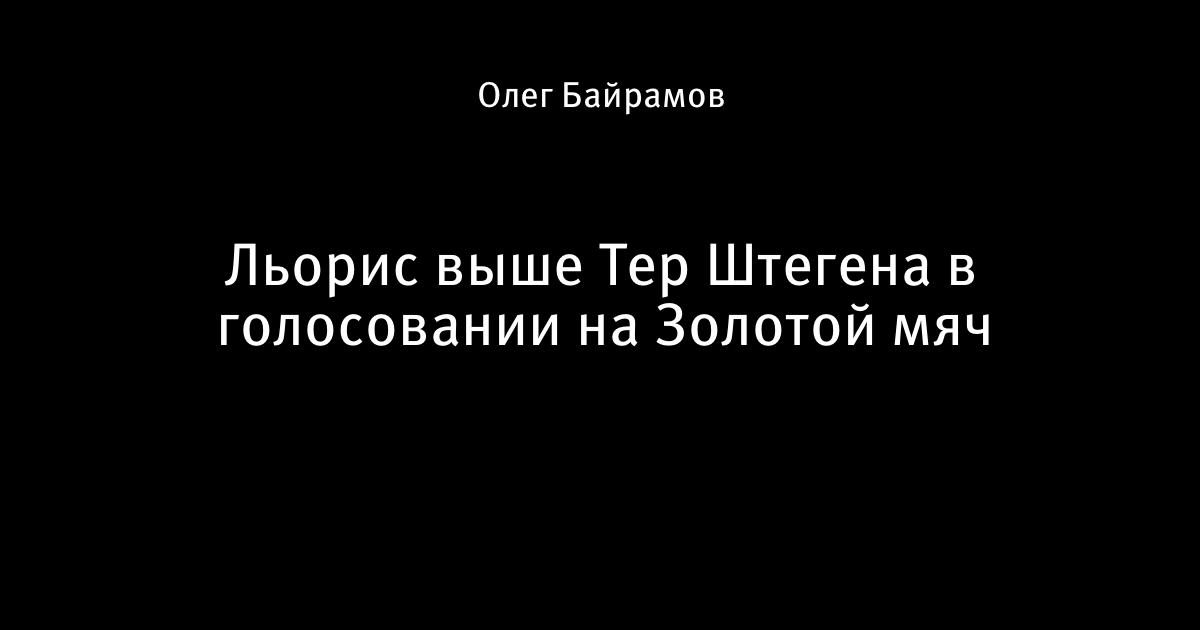 2 декабря 2019, 20:30 Льорис выше Тер Штегена в голосовании на Золотой мяч Этот пост написан пользователем Sports.ru, начать писать может каждый болельщик (сделать это можно здесь). Автор Олег Байрамов