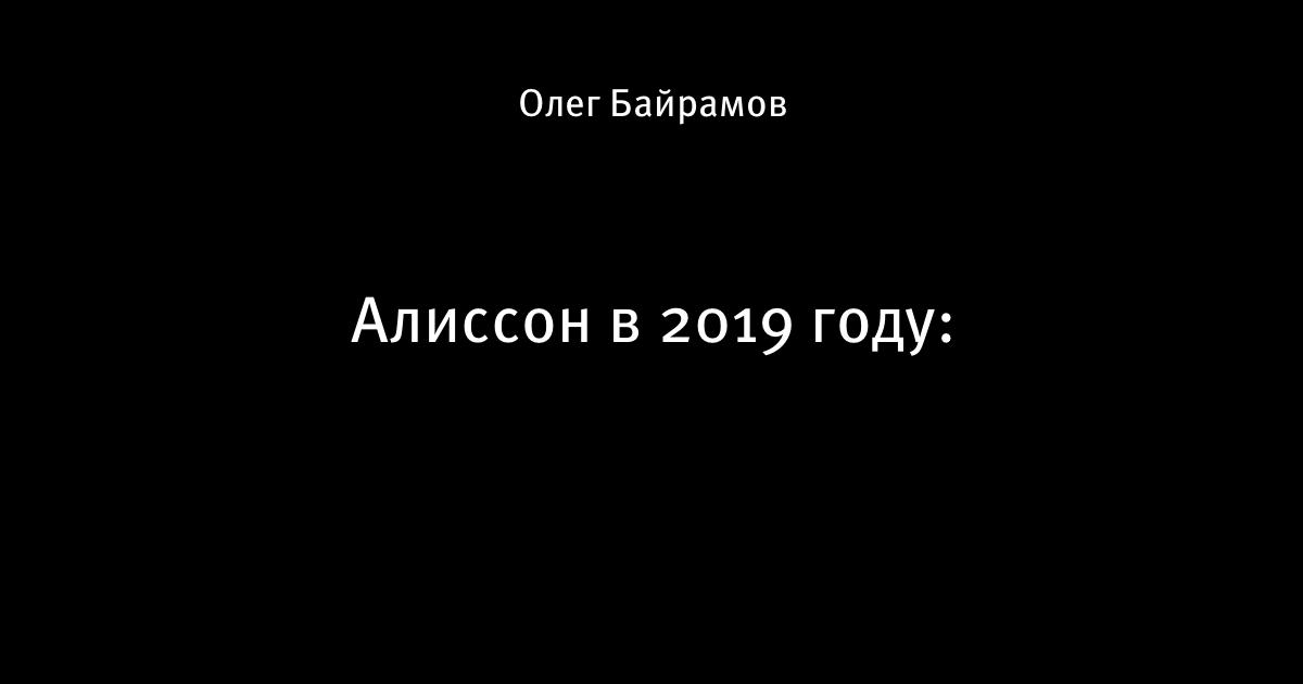 4 декабря 2019, 17:33 Алиссон в 2019 году: Этот пост написан пользователем Sports.ru, начать писать может каждый болельщик (сделать это можно здесь). Автор Олег Байрамов