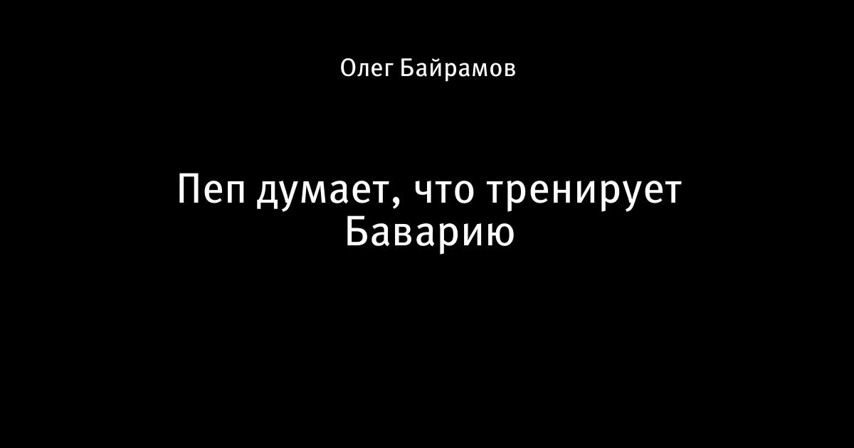 5 декабря 2019, 12:11 Пеп думает, что тренирует Баварию Этот пост написан пользователем Sports.ru, начать писать может каждый болельщик (сделать это можно здесь). Автор Олег Байрамов