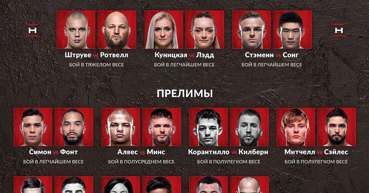 ФАЙТКАРД ТУРНИРА UFC ON ESPN 7: ОВЕРИМ ПРОТИВ РОЗЕНСТРУКА