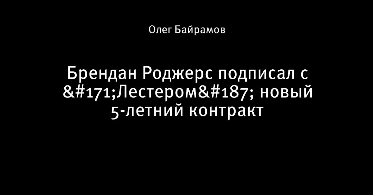 6 декабря 2019, 17:50 Брендан Роджерс подписал с «Лестером» новый 5-летний контракт 🦊💙 Этот пост написан пользователем Sports.ru, начать писать может каждый болельщик (сделать это можно здесь). Автор Олег Байрамов