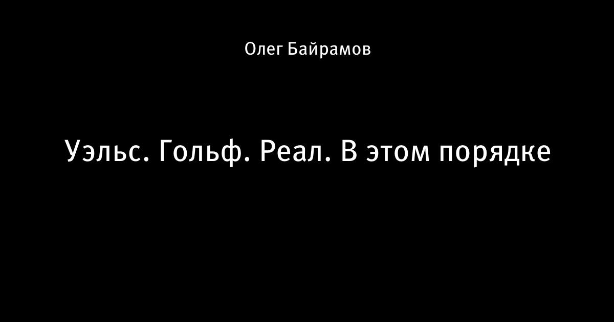 6 декабря 2019, 19:58 Уэльс. Гольф. Реал. В этом порядке 😉 Этот пост написан пользователем Sports.ru, начать писать может каждый болельщик (сделать это можно здесь). Автор Олег Байрамов